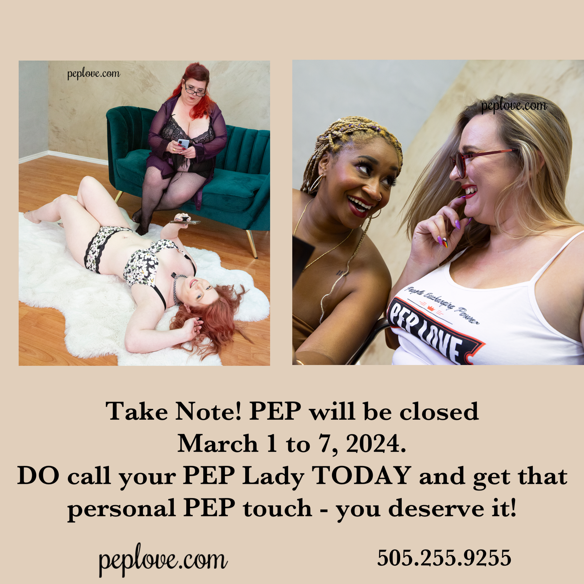This year is FULL and RICH and READY for you to SOAR, PEP Lover. We are so grateful you choose US! This recent note from a longtime PEP Caller made us tear up: "The Ladies at PEP have always made me feel comfortable with my kinks and I've had no issues sharing them at all. You all are the best. I have been calling PEP for years, this is my home away from home."