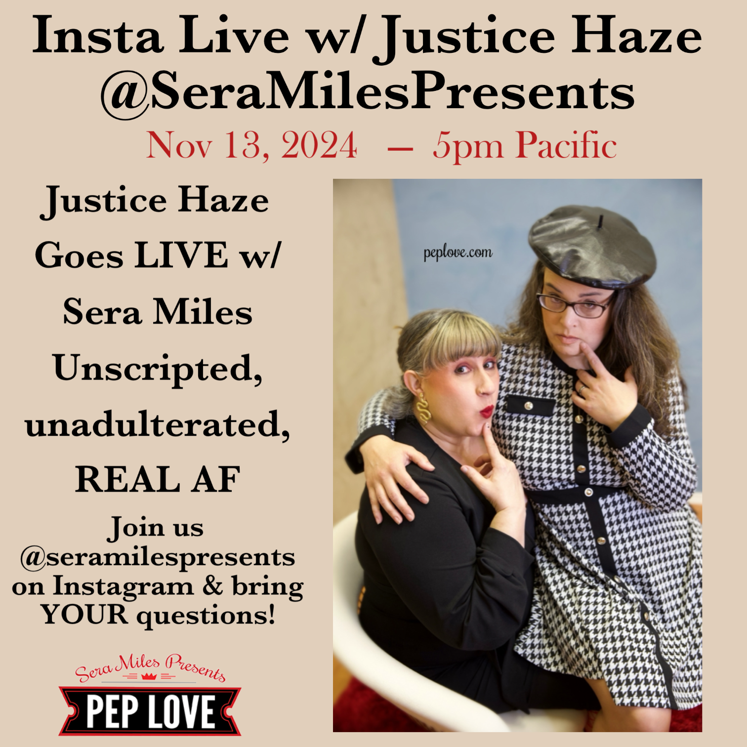 Have you read her letter to you, PEP Lovers? Justice was the very first Lady to pen a letter to you, all the way back in 2017! We love her approach to kink & play, in that she's in it for the power exchange, the exaltation, the way good old fashioned BDSM takes YOU and her up to the edge ... we'll talk about all this AND MORE tonight, LIVE!