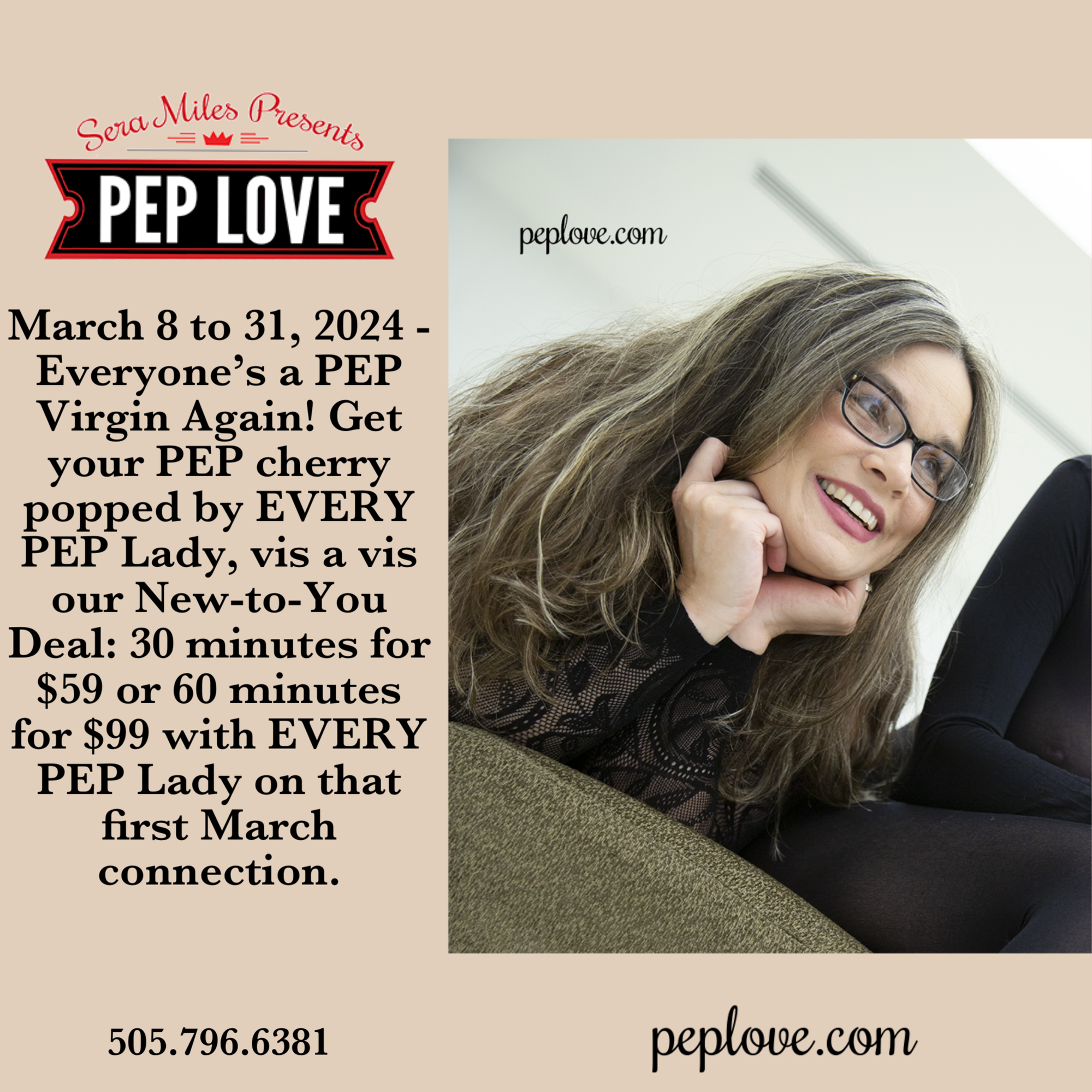 How many times have you popped your PEP cherry so far this month? You've got 14 days and change to treat yourself to a call with each Lady - at $59/ 30-minutes, how can you deny yourself?