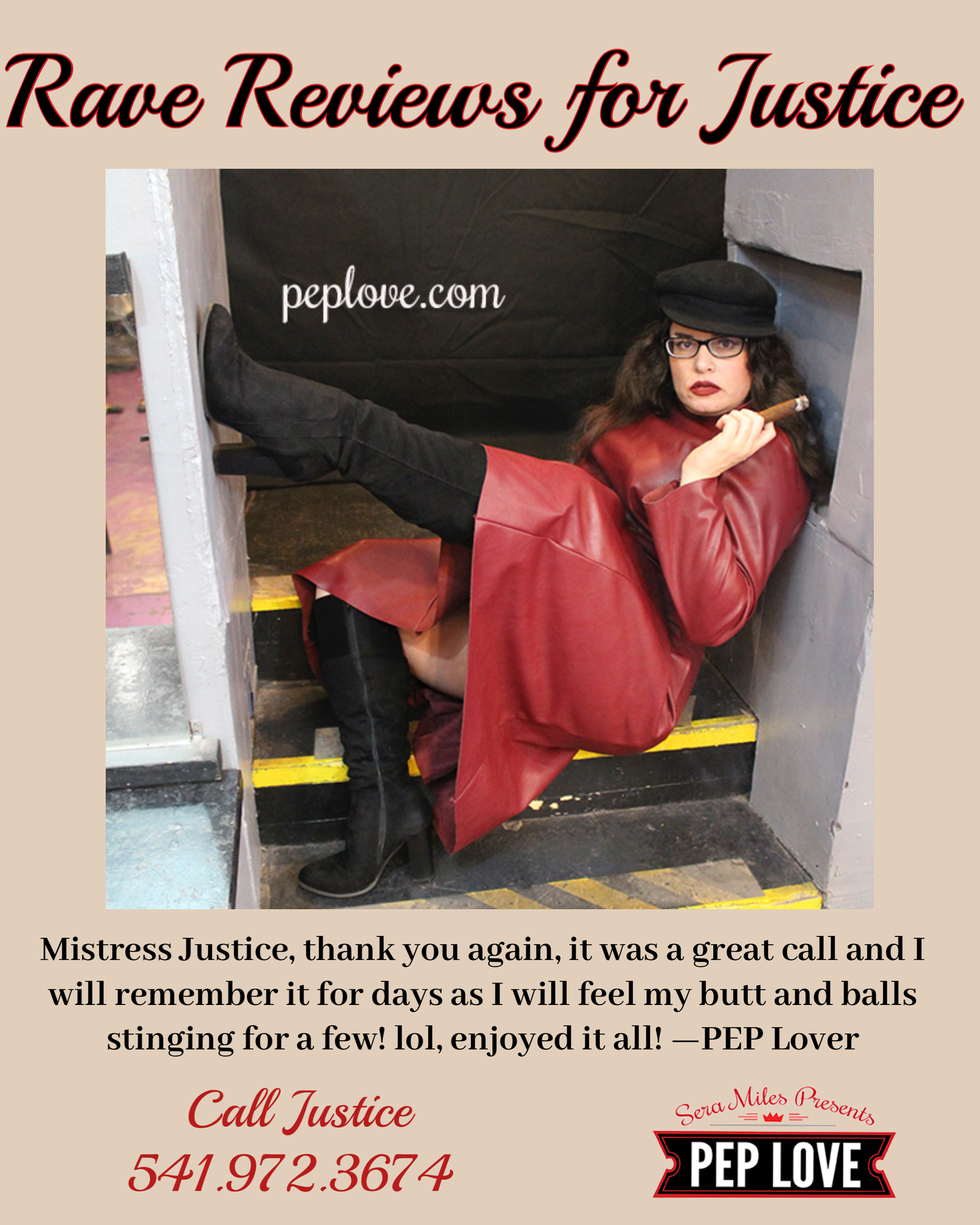 *Justice was the very first PEP Lady, ever, to pen a "letter to current and prospective callers." She popped hers onto her FetLife in late 2017 or so, and we fell in love with the idea. Now, all of our Ladies write down what they want you to know, first and foremost, in their own language, which us PEP Execs lightly edit, at most. Justice comes up with a lot of the very cool prompts we use all around PEP, to create material that will pique & keep & heighten your interest & sense of connection.