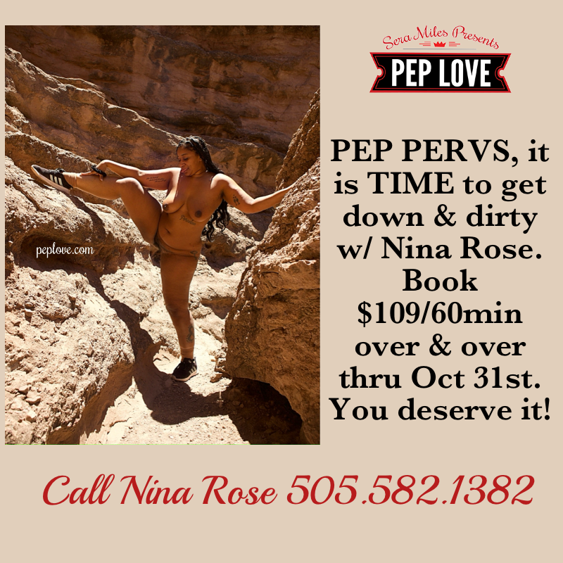 Nina LOVES her PEP Pervs and wants to ensure you can talk often this month. This great deal saves you $20 off the a la carte hour and dishes up anything you need. If you know Nina, you know she likes to talk dirty dirty dirty. From toilet training to golden showers, humiliation to rape fantasy, Nina is in.