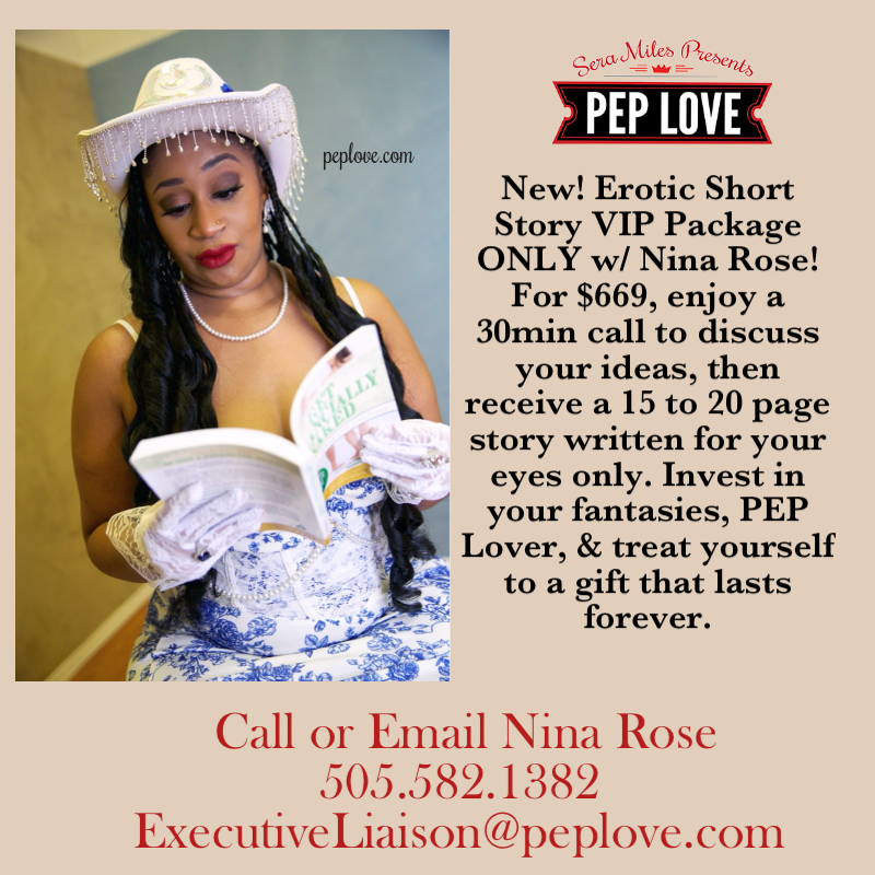 Nina Rose takes such delicious photos, and she'd LOVE to heat your phone up safely and discreetly with photo add-ons. Feast with your ears and eyes this season, PEP Lover. Talk OFTEN, treat yourself to the Erotic Short Story VIP, order photos ... the possibilities for your senses are endless. Don't you want to hear Nina describe the scent of her pussy, the taste of her sweat, the ways she'll torture you before joining you in sweet release? It is TIME to get down and dirty with Nina Rose. You work hard. You need to de-stress, unwind, relax. You deserve Nina Rose's way with words on the page and in your ear NOW more than EVER.