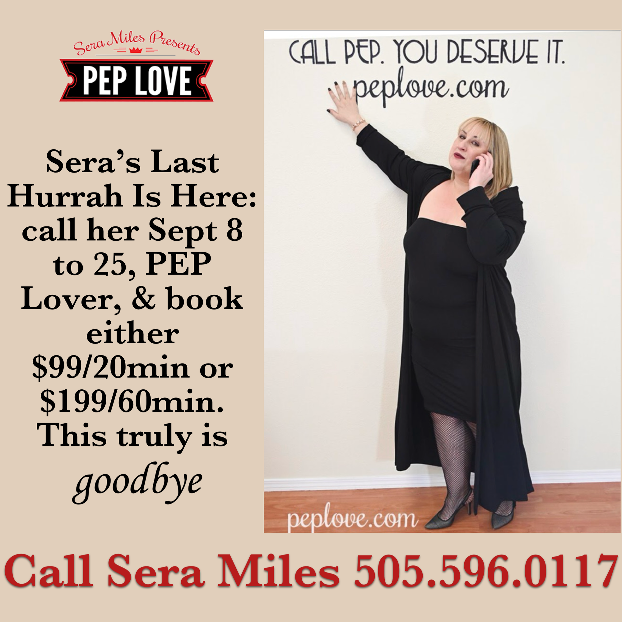 A long goodbye is the sweetest, & two years after going into semi-retirement re: PEP Calls, Sera Miles is offering you a few more weeks to connect, before making that retirement permanent. (Don't worry! She still owns, loves, & runs PEP!)